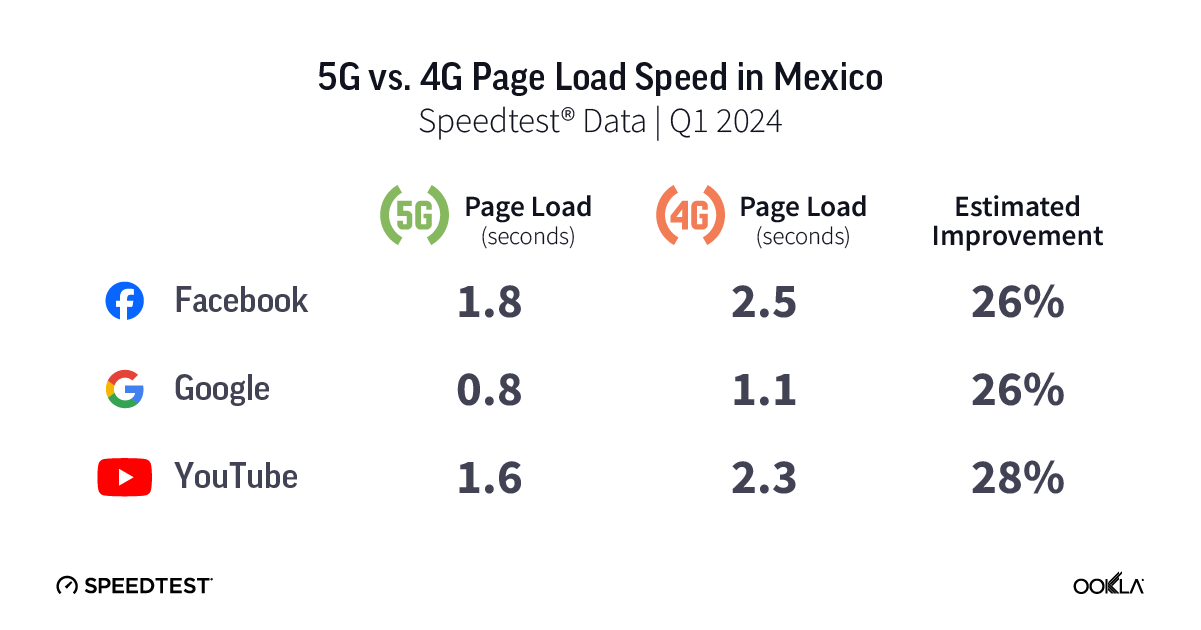 Mexican 5G loads 26-28% faster than 4G