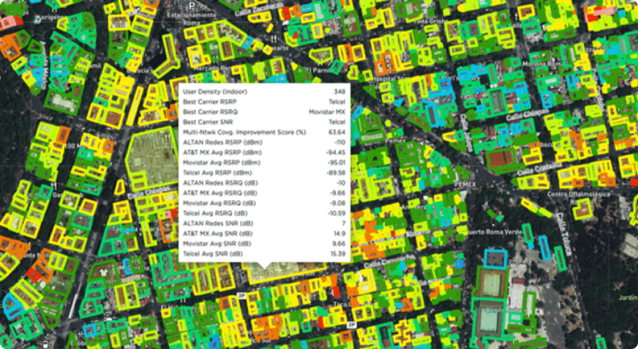 Cell Analytics identifies performance per building, so that you can see indoor coverage and quality per operator — as well as user density, down to the building level.