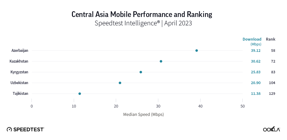 The quality of connectivity also matters. Across Central Asia, where close to half of the population lives in rural areas, it is crucial to make sure that those communities are not left behind when it comes to fast and reliable internet. The latest data from Speedtest Global Index™ shows that there is still room for improvement in the rankings of the “stans.” However, it is encouraging to see that their mobile rankings are on the rise. In Central Asia, where fixed-line broadband and mobile access are limited, access to reliable and high-quality mobile networks is critical; mobile technology is a key factor in digital inclusion and supports economic growth through mobile banking and remote education, among other things.
