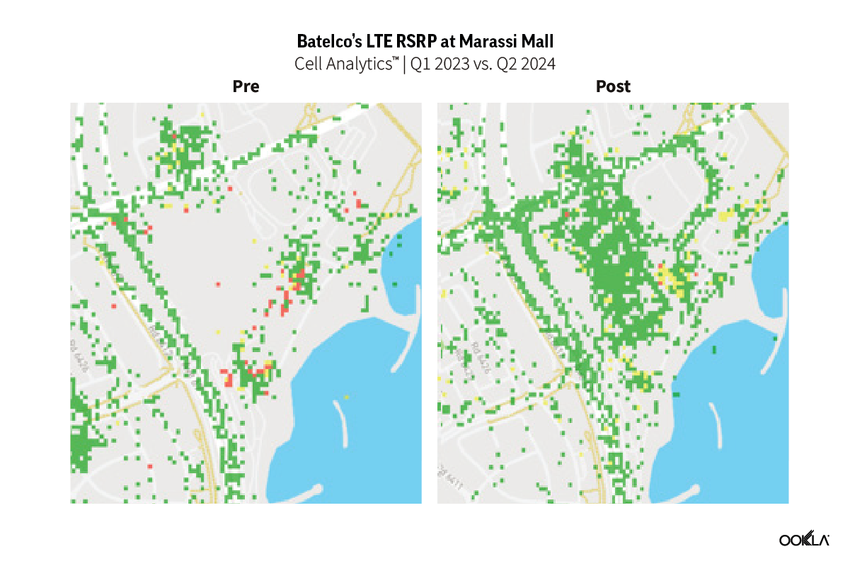 Similarly At Marassi Galleria Mall, targeted efforts during 2023 and 2024 led to +90% coverage improvements as shown below.