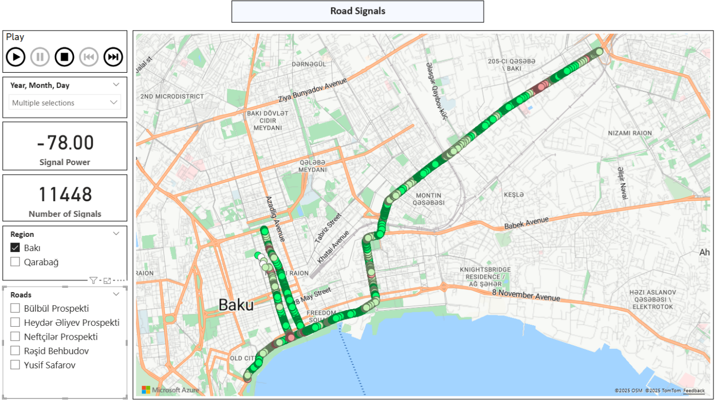 - Road-Level Signal Monitoring: Mobile service quality often fluctuates along roads and transport corridors, disrupting calls and data connectivity. Manual drive tests to detect such issues are costly and limited in scope. Using Ookla Cell Analytics, ICTA now monitors signal strength continuously across major roads in Baku, with GPS-tagged results from real users highlighting weak spots and guiding more effective infrastructure planning.