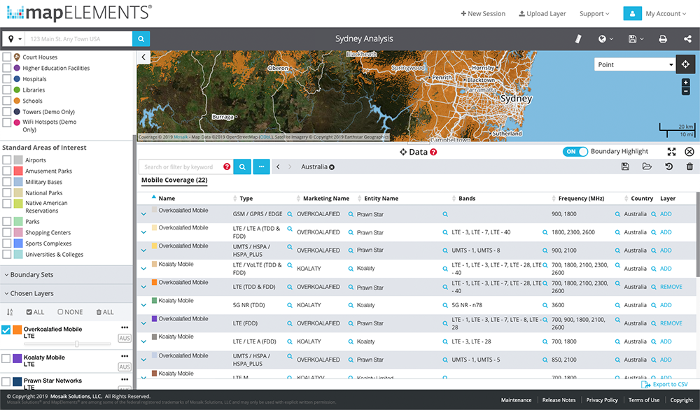 Map Elements by Ookla® is an award-winning, cloud-based service that helps business groups within organizations make smart decisions by visualizing wireless, cable, broadcast, and landline network coverage intelligence. Quickly access the insights you require without long research timeframes and costly resource investment.