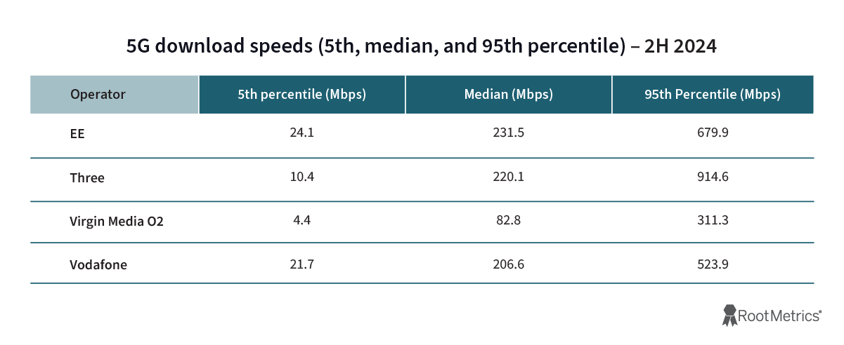 While Three trailed EE and Vodafone for awards in major metropolitan markets, the operator showed speed improvements in major metropolitan markets. Three recorded median download speeds above 50 Mbps in one more city than it did in 1H 2024, while also not registering any speeds below 30 Mbps, providing a solid speed floor for its users.