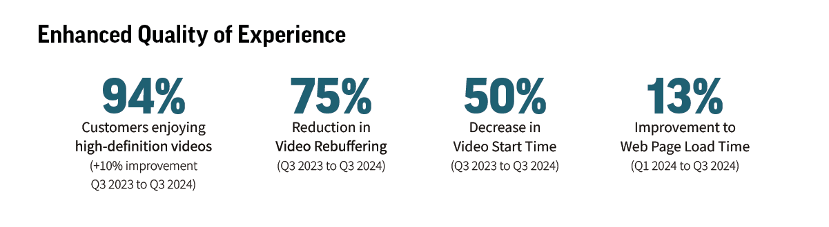 Using Consumer QoE, Batelco evaluated multiple key metrics to better understand the end-user experience, including latency, web page load times, gaming, social media, video rebuffering, and video resolution. Based on this data, Batelco implemented strategic improvements to enhance its content delivery by designing data paths to reduce hops and optimize network efficiency, address high-latency routes to improve performance, and expand content caching and improve routes for top-tier content providers.