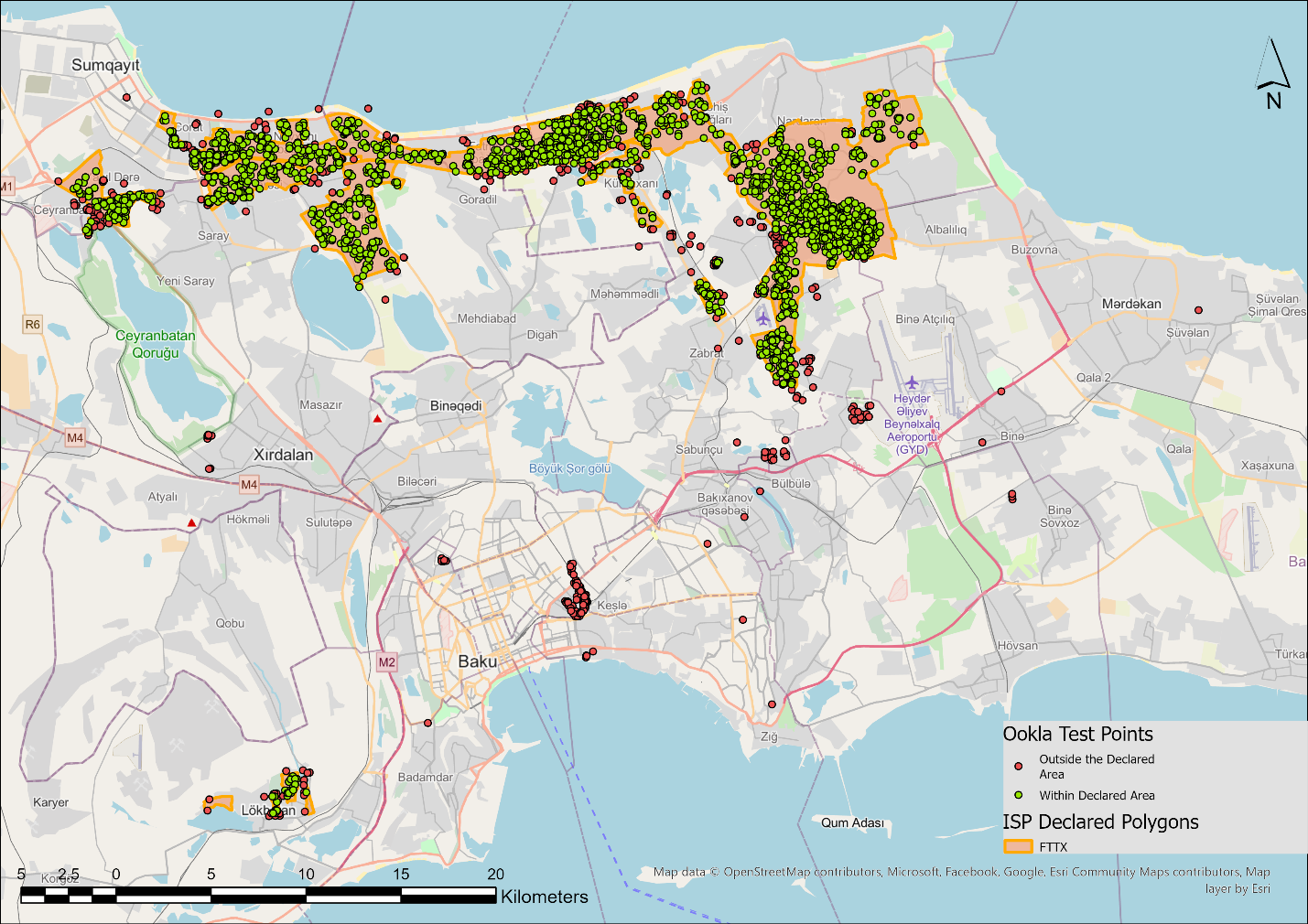 - Road-Level Signal Monitoring: Mobile service quality often fluctuates along roads and transport corridors, disrupting calls and data connectivity. Manual drive tests to detect such issues are costly and limited in scope. Using Ookla Cell Analytics, ICTA now monitors signal strength continuously across major roads in Baku, with GPS-tagged results from real users highlighting weak spots and guiding more effective infrastructure planning.