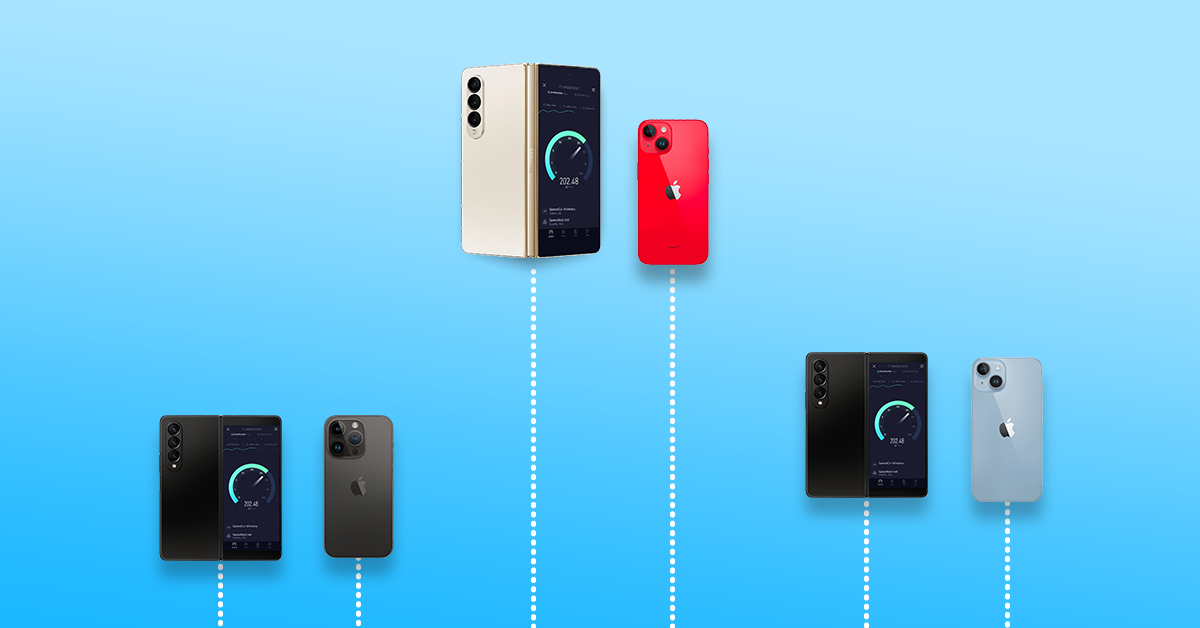 Consumers across the world have been waiting for the recent launches of new Apple iPhone 14 devices and the Samsung Galaxy Z Fold4. With new chipsets and technologies, Ookla® was curious to see how much faster these devices were performing against previous models, so we used Speedtest Intelligence® to look at data from select countries during the first few weeks after launch. We compared how the iPhone 14 devices are performing against their iPhone 13 counterparts over 5G and how the Samsung Galaxy Z Fold4 is performing against the Galaxy Z Fold3 over 5G.
