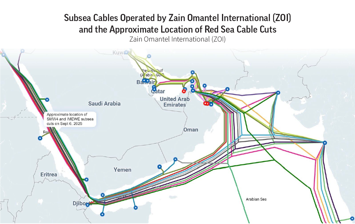 Zain Omantel International (ZOI), a joint venture that combines the international wholesale assets of Omantel and Zain, played an important role in ensuring that the outage had a limited impact on Omani internet users. ZOI operates more than 20 terrestrial and subsea cables that land in Oman. This multiplicity of traffic routes has resulted in better resilience for local operators compared to some of their peers in the Gulf region, particularly in the UAE. This was evidenced during the recent cuts in the subsea cables across the Red Sea on September 6th, 2025, which took offline two main cables, SMW4 and IMEWE, near Jeddah (Saudi Arabia), disrupting connectivity across the Middle East, South Asia, and Africa.