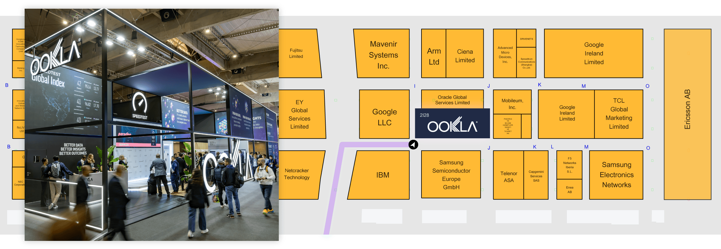 Ookla’s booth is centrally located in Hall 2, Booth 2i28