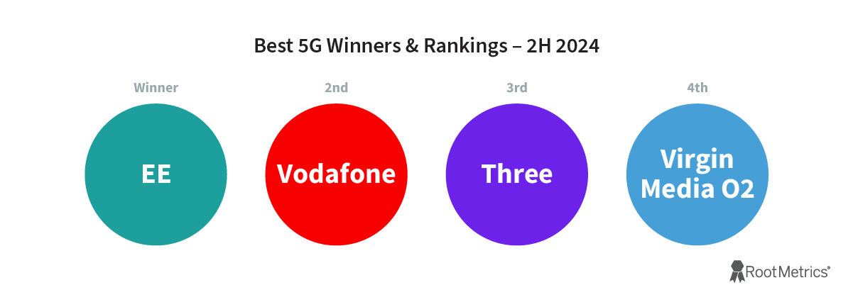 EE maintained its position as the UK’s leading network, winning or sharing every UK-wide RootScore Award while also winning the most awards in both nation and metro area testing. EE’s 5G network also impressed, with the operator winning our prize for Best 5G Experience through its combination of widespread availability and strong performance.